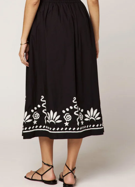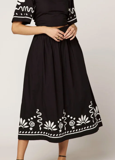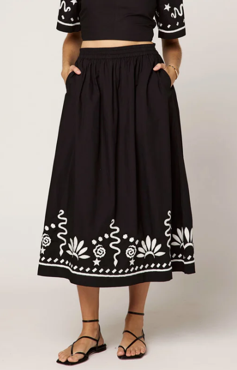 Ethically handmade in India from organic cotton poplin, the Ashleen Midi Skirt features a flattering A-line silhouette, smocked waistband, and convenient pockets for everyday wear. Effortlessly versatile and comfortable, this midi skirt pairs perfectly with the Minka Top for a coordinated matching set.