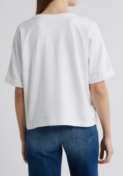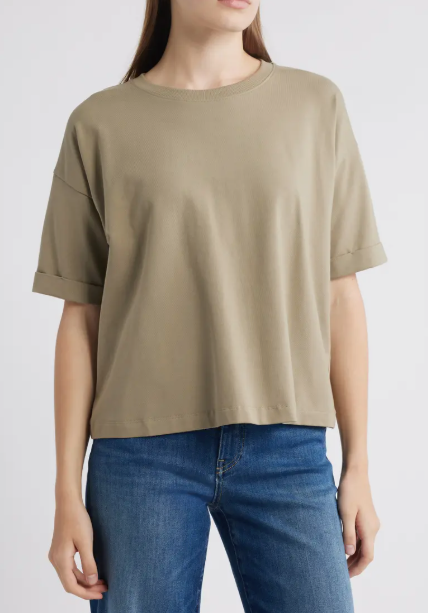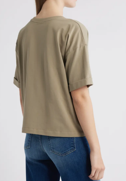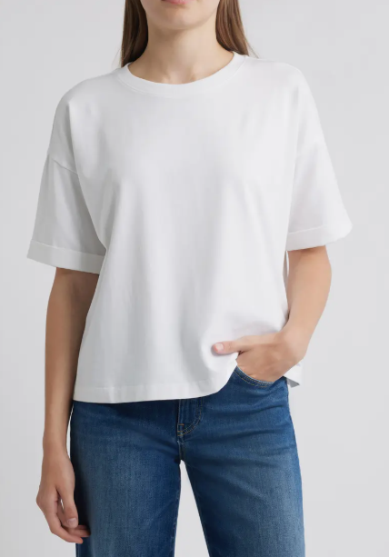 Cut from long-staple organic cotton with a touch of stretch, this simply styled and boxy T-shirt is framed by jaunty cuffed sleeves.