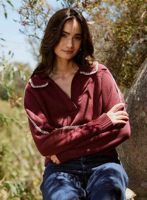 The Ell Sweater is ethically crafted from 100% certified organic cotton for cozy, sustainable style. This raglan-sleeve sweater features a collared neckline and contrast whipstitch detailing, adding a touch of artisan-inspired texture to a timeless silhouette.