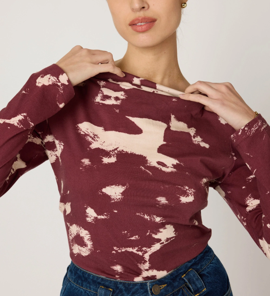 Ethically handmade in India from 100% organic cotton, the Gina Top features the Bold Tamayo print in an effortlessly chic silhouette. Designed with long sleeves and a soft cowl neckline, this slip-on style offers comfort and elevated style—perfect for layering or making a statement on its own.