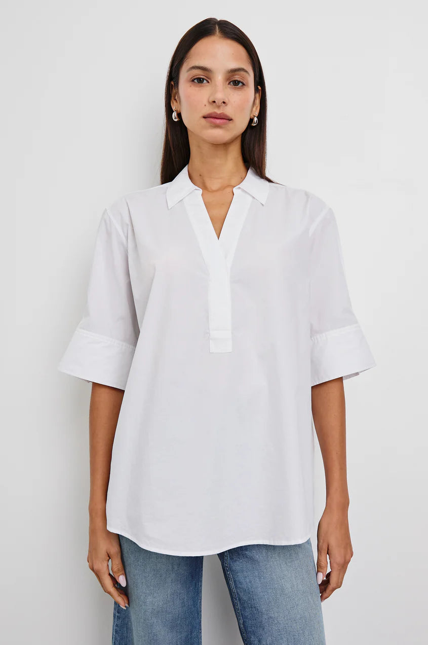 Crafted from airy cotton poplin, the Juda is a shirt specifically designed to keep you comfortable. With a roomy fit, v-neckline and collar, this is an essential lightweight pullover.