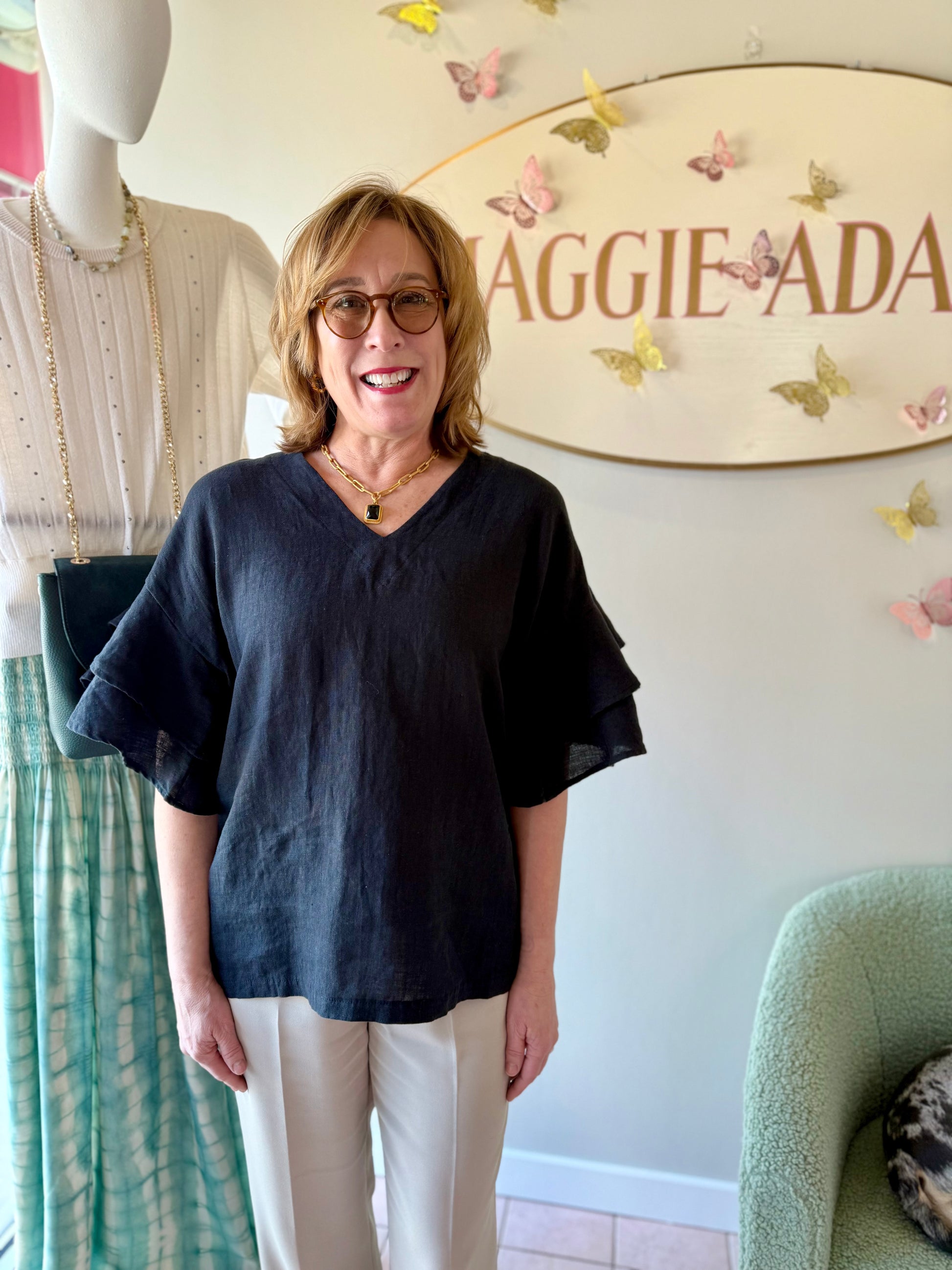 Black flutter sleeve top