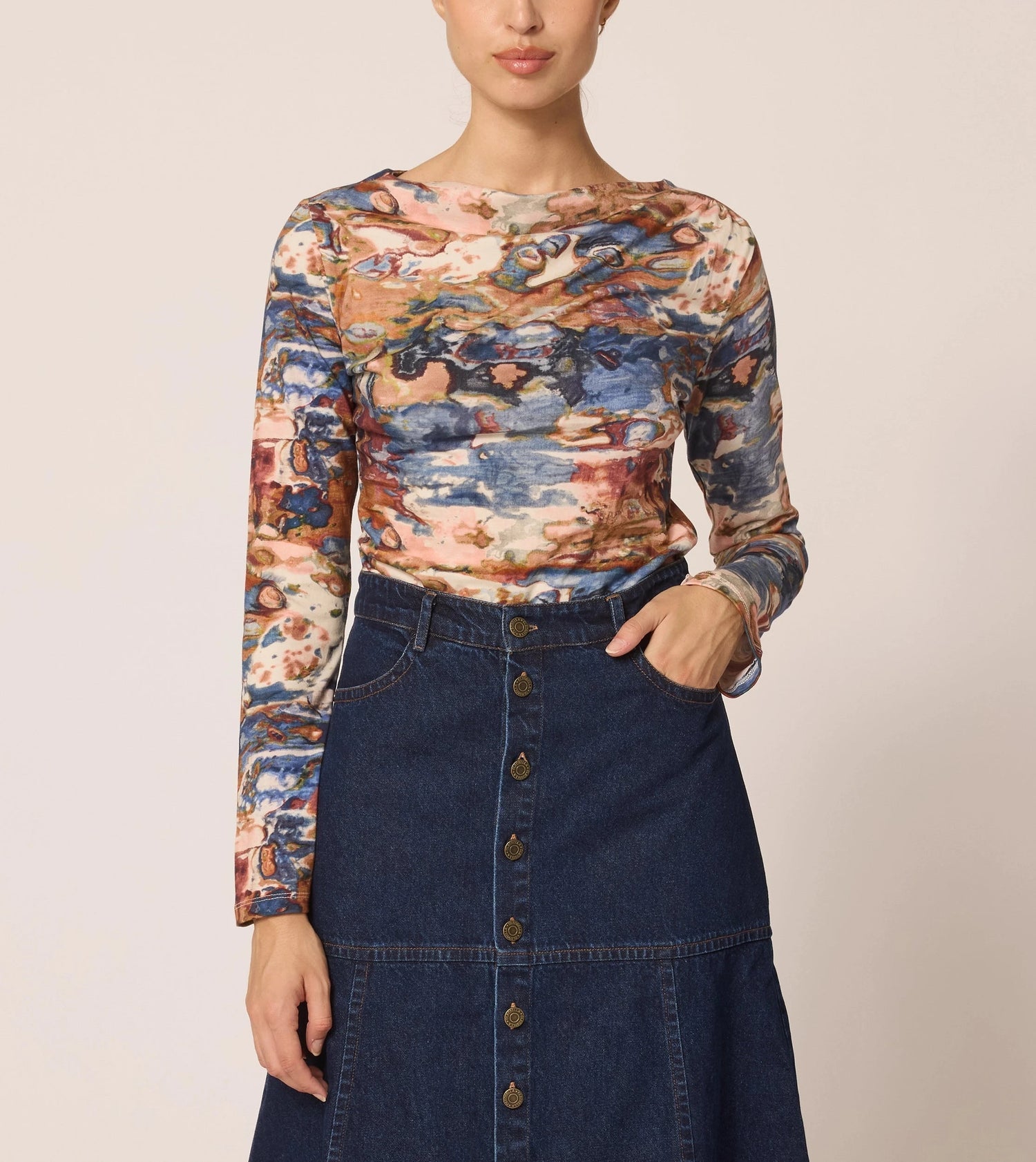 Cute boat neck long sleeve top