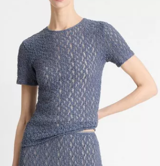 Crew in a sheer and airy floral smocked lace with a hint of stretch.
