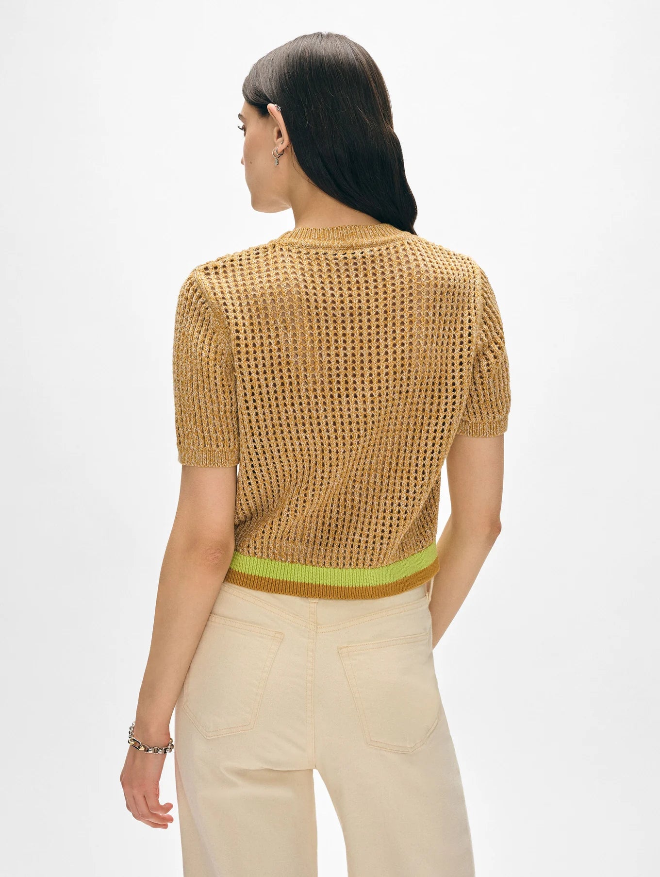 A modern staple for warm days, the Organic Cotton Mesh T-Shirt is the top you'll reach for again and again. Sitting at the top of the hip, it's both flattering and modern, with a wide stripe trim and mesh detailing adding a touch of contemporary detail.