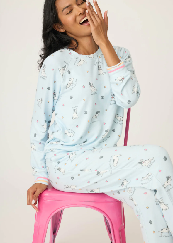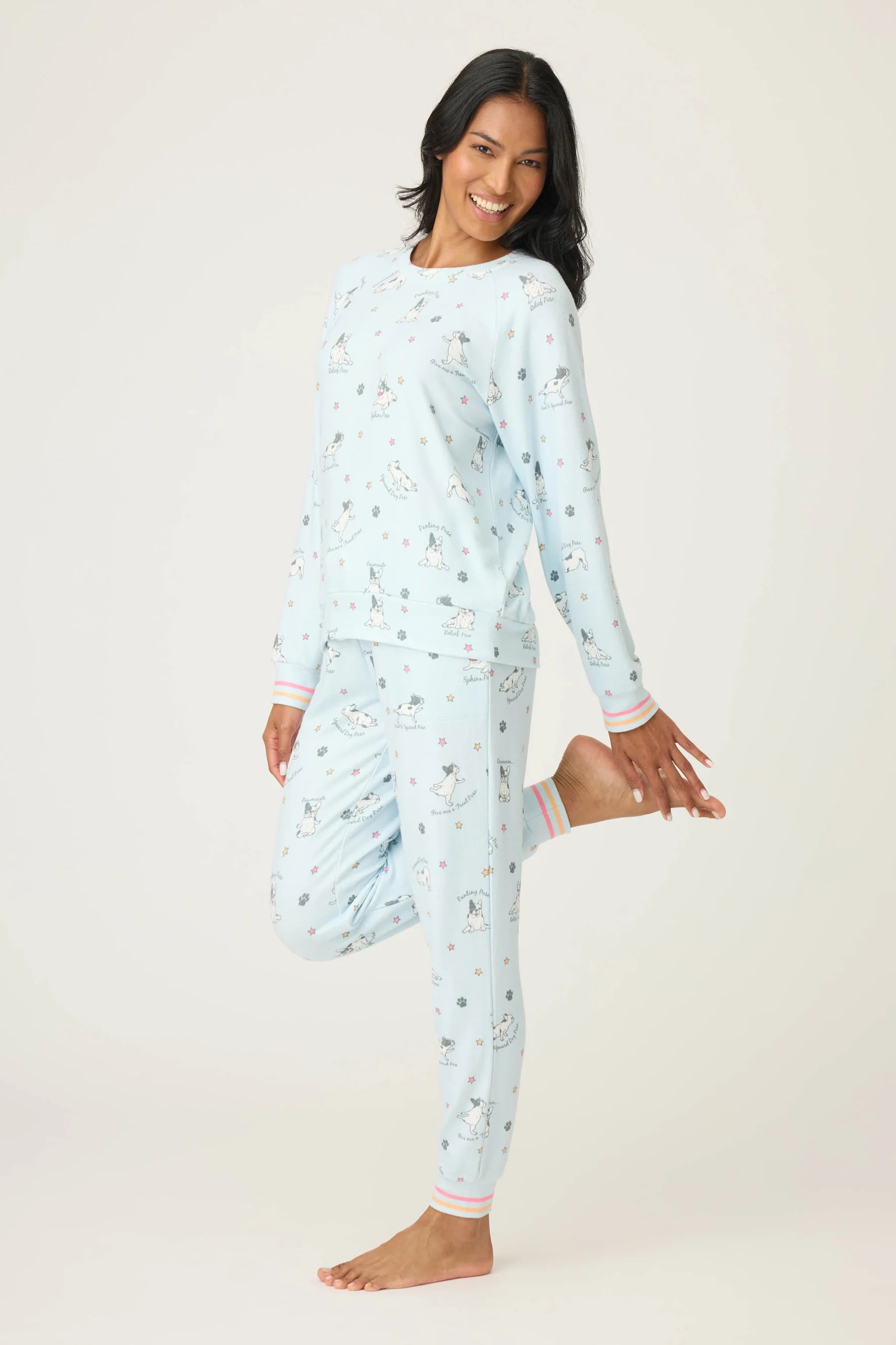 Breathe in, wag out. This matching set is crafted from our peachy-soft jersey in a calming misty blue hue with a touch of stretch for ease.