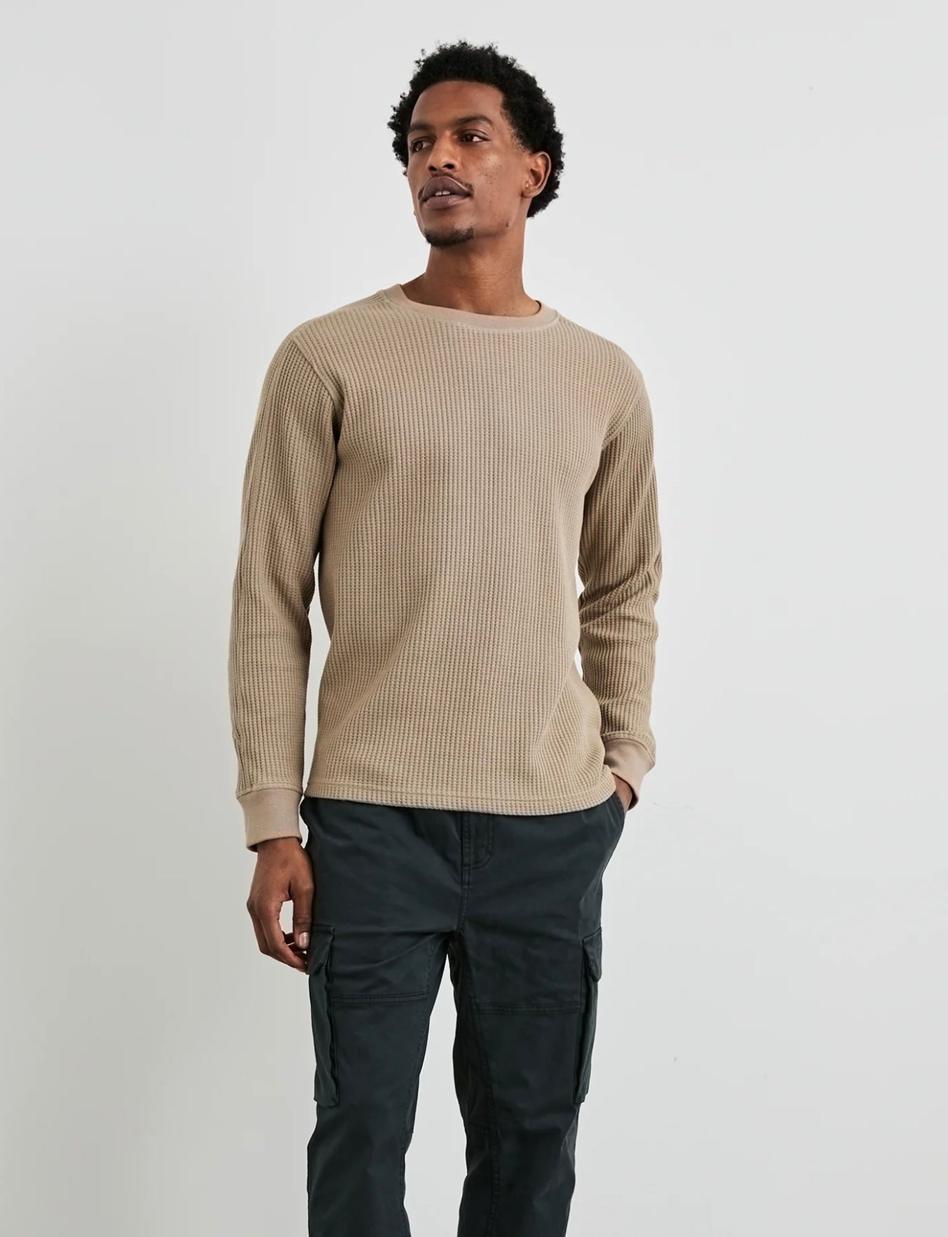 No cozy season is complete without Wade, a heavy-duty waffle knit thermal. Crafted from a soft cotton-poly blend with a traditional crewneck and rib cuffs, the Wade is a layering essential.